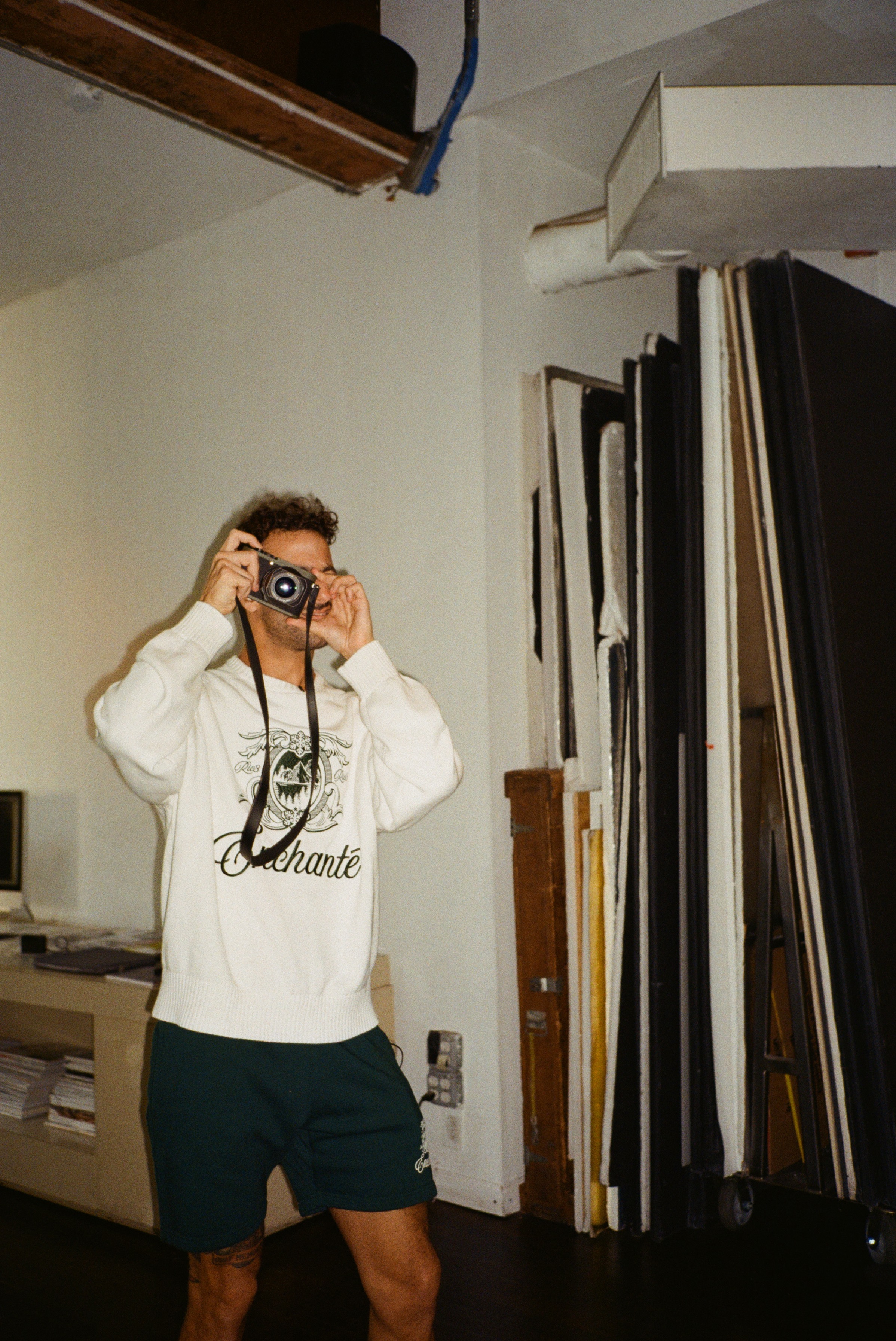 The day was captured for an Instagram Reel that was released in August. Ricciardo and Ferreira walk through the Enchanté New York City office, commenting on the jackets and sweatshirts, giving notes on the upcoming collection, and grabbing slices of pizza to eat on a stoop. It looks joyous, and collaborative, but of course it was also tailor-made for Enchanté’s social media. So, I ask Ferreira what it was really like.